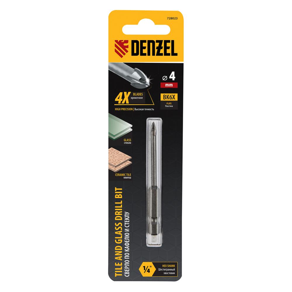Сверло Denzel 728023, 4 мм, с крестовой пластинкой и шестигранным хвостовиком, рассчитано на сверление керамической плитки, стекла, мрамора и фарфора. Благодаря 4-гранной режущей пластине оно обеспечивает высокую скорость засверливания. Сверло подходит для интенсивного профессионального использования. В процессе работы рекомендуется применять водяное охлаждение для увеличения ресурса сверла.
