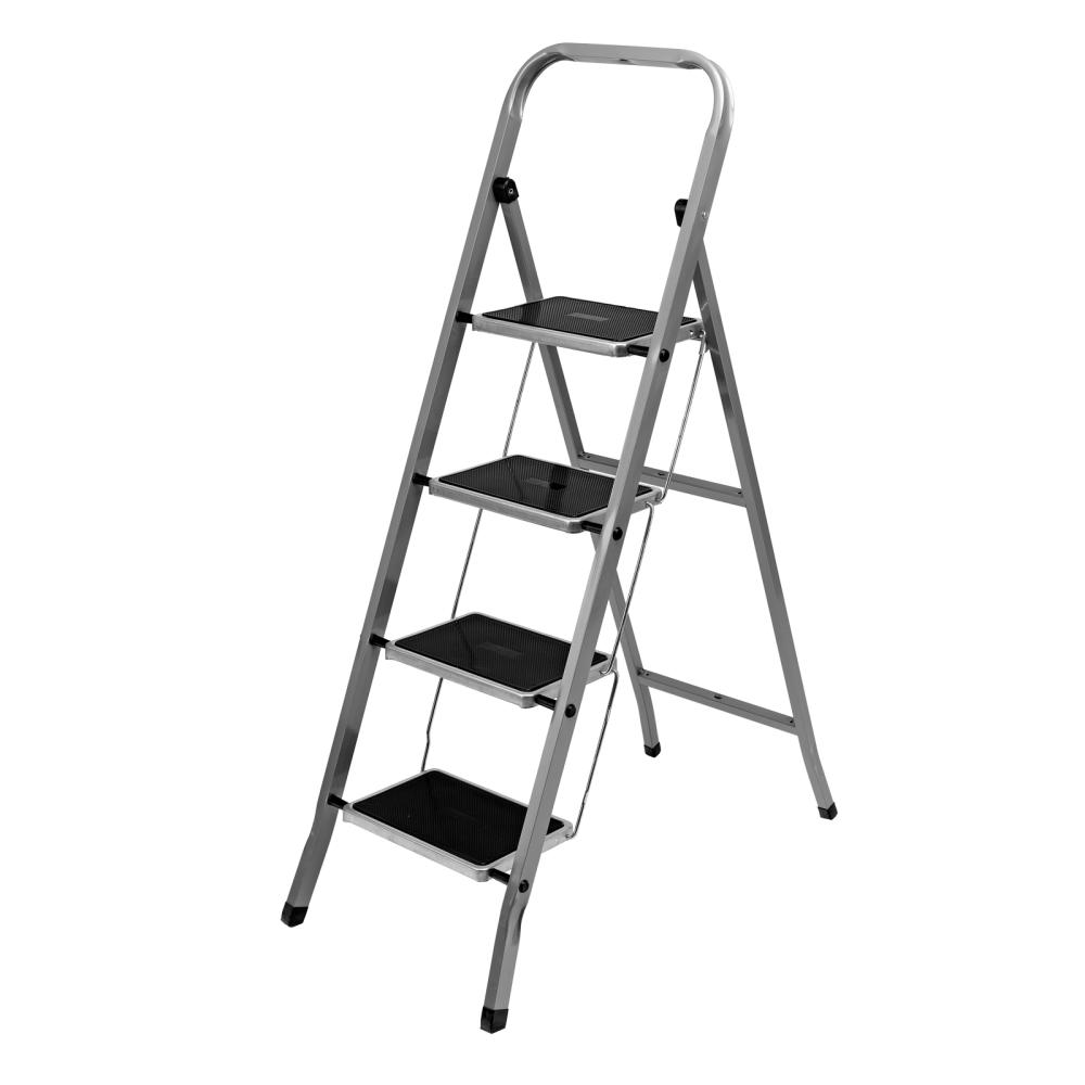 Прочность — рама и ступени изготовлены из стали, поэтому стремянка выдерживает нагрузку 120 кг.