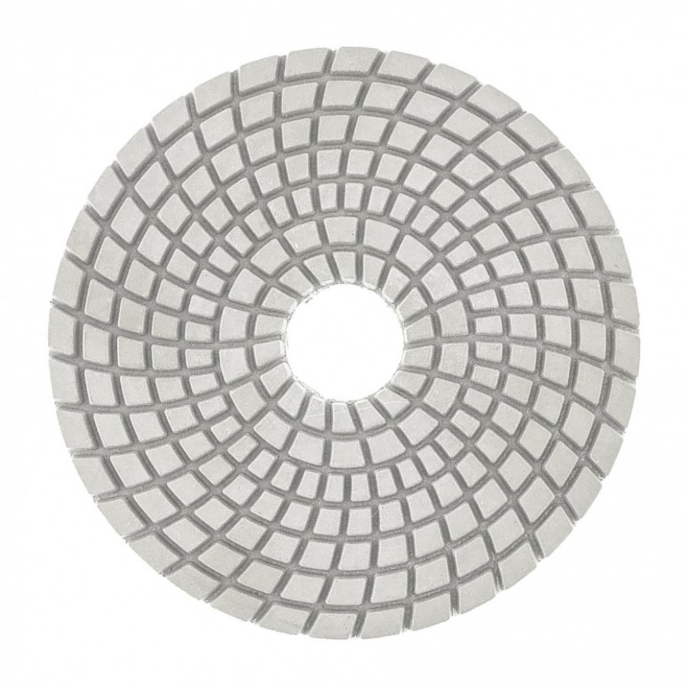 Алмазный гибкий шлифовальный круг Matrix 73508 диаметром 100 мм, с зернистостью P 100, 5 шт. в упаковке, предназначен для мокрого шлифования и используется при проведении строительных, отделочных и художественных работ. Абразив зернистостью P 100 позволяет проводить черновую обработку гранитных, каменных, керамогранитных и мраморных поверхностей. Рабочая часть выполнена из белого термопластика с алмазным напылением и подходит для использования на цветных, преимущественно белых, материалах. Гибкая основа круга облегчает шлифовку рельефных элементов. Круг используется на УШМ с установленной опорной тарелкой для АГШК.