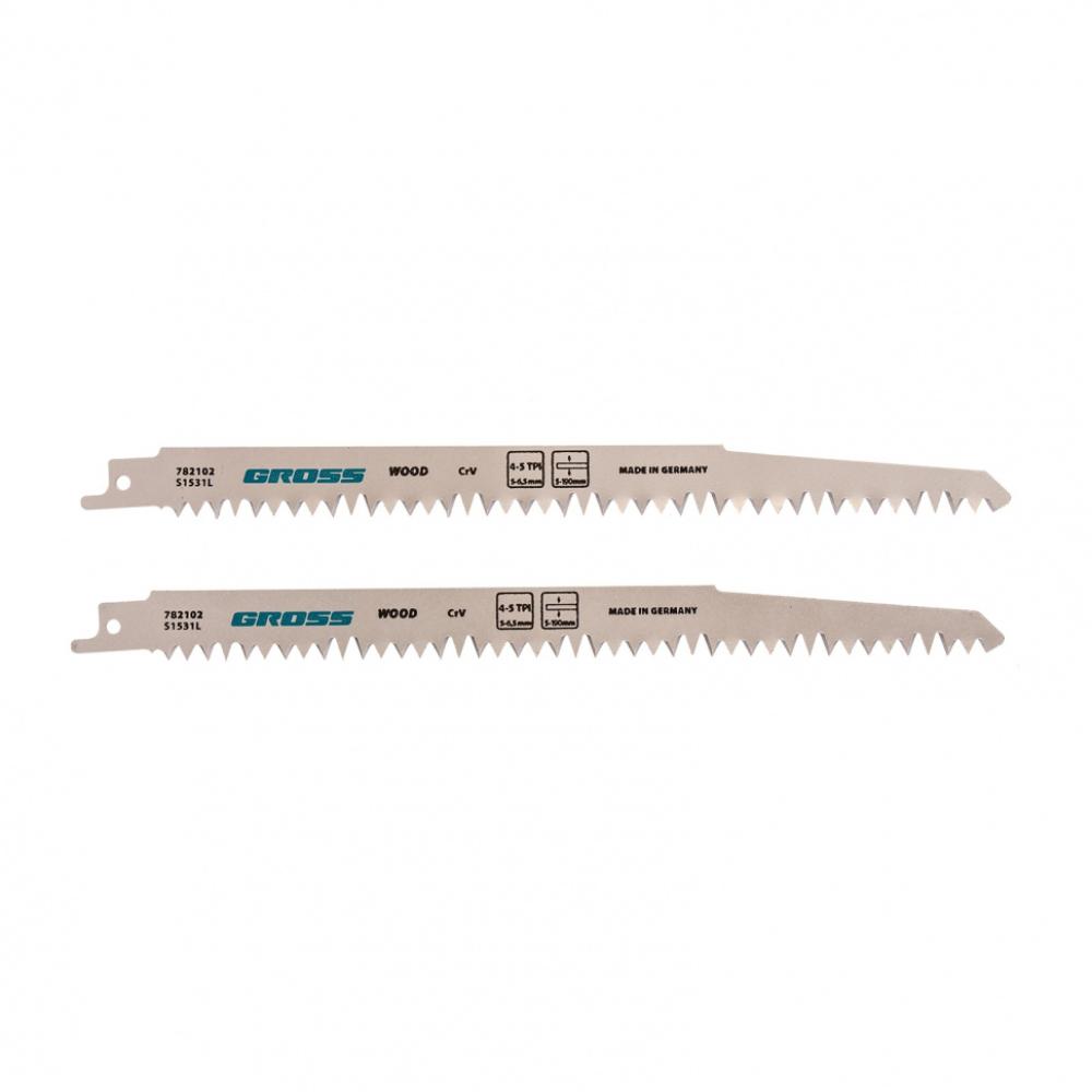 Полотна по дереву Gross 782102, 4052 - S1531L, 2 шт. размером 210 x 5-6,5 мм, используются совместно с сабельной пилой для фигурного и прямого реза. Профессиональные полотна обеспечивают возможность реза древесины и обрезки сучьев любой твердости толщиной до 190 мм. Они пригодятся при проведении ремонтных, строительных, садовых, монтажных/ демонтажных работ.