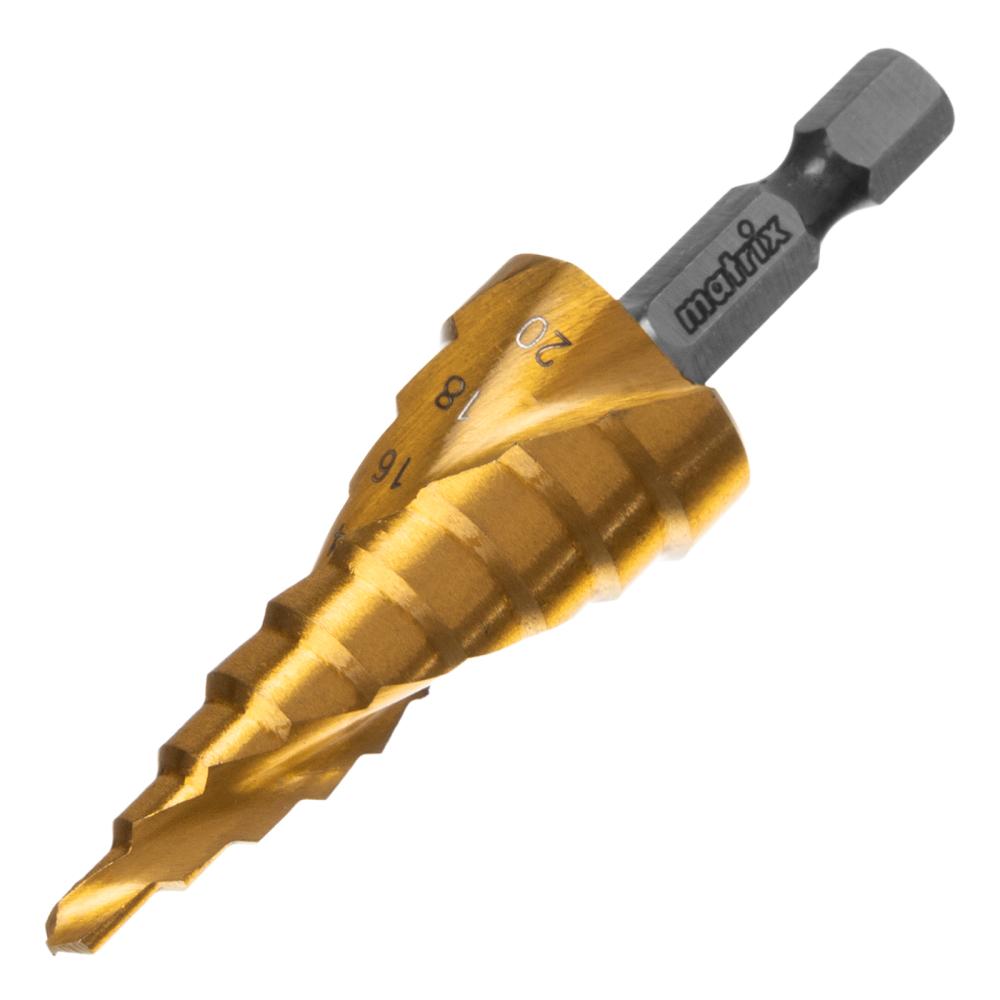 Ступенчатое сверло Matrix 72356 из стали HSS, со спиральным профилем и шестигранным хвостовиком, позволяет получать отверстия различного диаметра: 4-6-8-10-12-14-16-18-20 мм. Его можно использовать для работы с материалами толщиной до 5 мм: стали, цветных металлов, нержавейки и пластика. Отверстие выходит аккуратным, с ровными краями благодаря плавному ступенчатому переходу и возможности сразу снять фаску.
