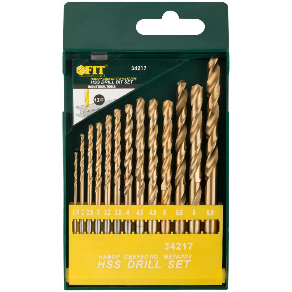 Набор сверл hss по металлу, титановое покрытие, 13 шт. (1,5-6,5 мм) ФИТ