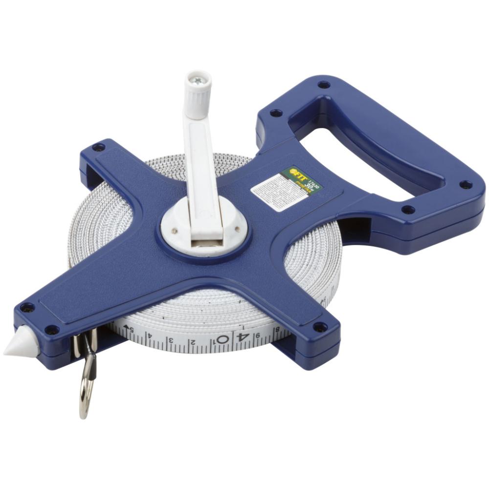 Геодезическая рулетка FIT применяются строителями и геодезистами для межевания земельных или других участков. Рулетка оборудована штыком для того, чтобы ее легко можно было закрепить в земле при измерении больших длин. Мерное полотно выполнено из фибергласа и отличается гибкостью и устойчивостью к истиранию. Металлическое кольцо-зацеп позволяет фиксировать ленту. Корпус рулетки изготовлен из пластика, устойчивого к ударным нагрузкам.