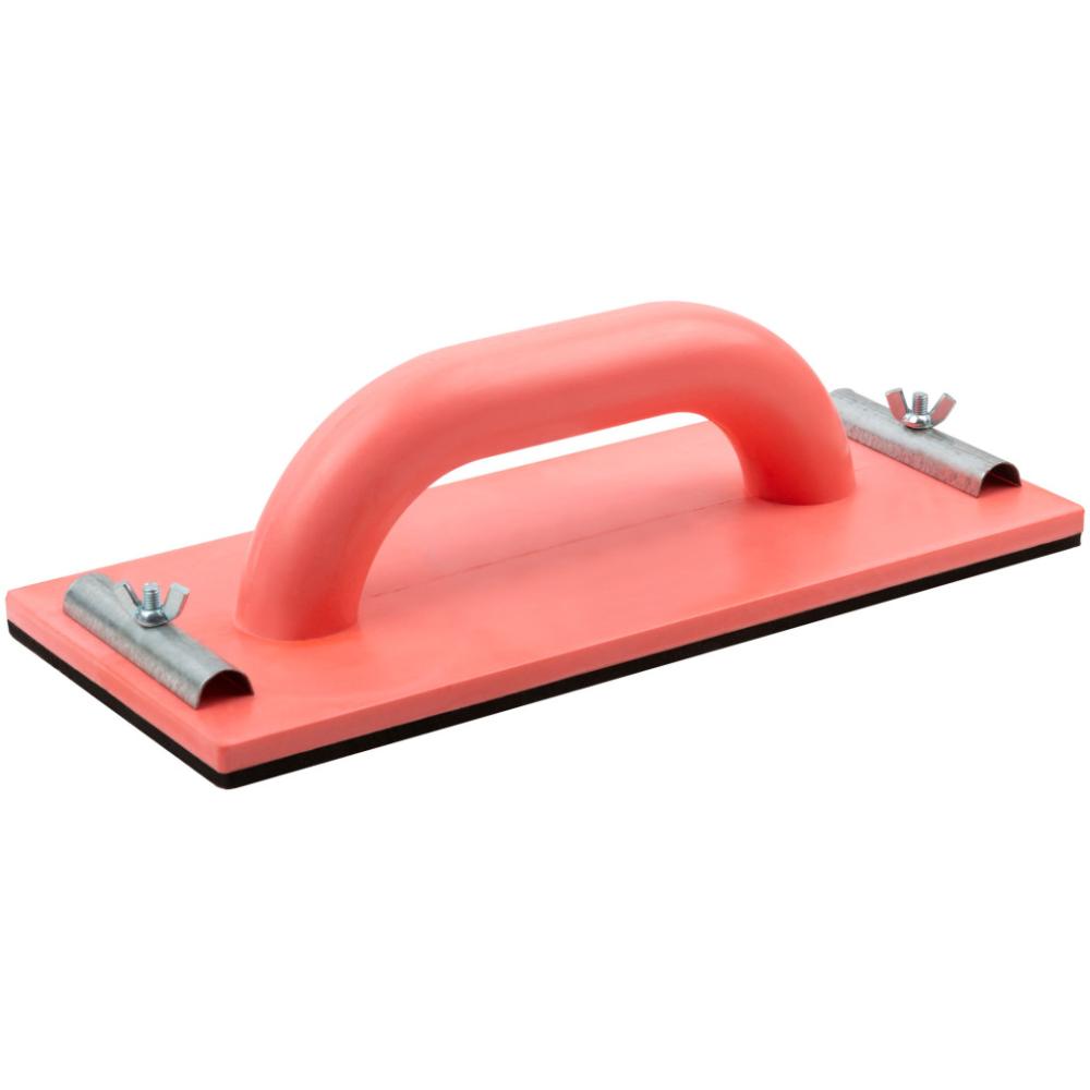 Для наждачной бумаги. Используется при обработке плоских поверхностей. Материал: полиуретан, металлические прижимы.