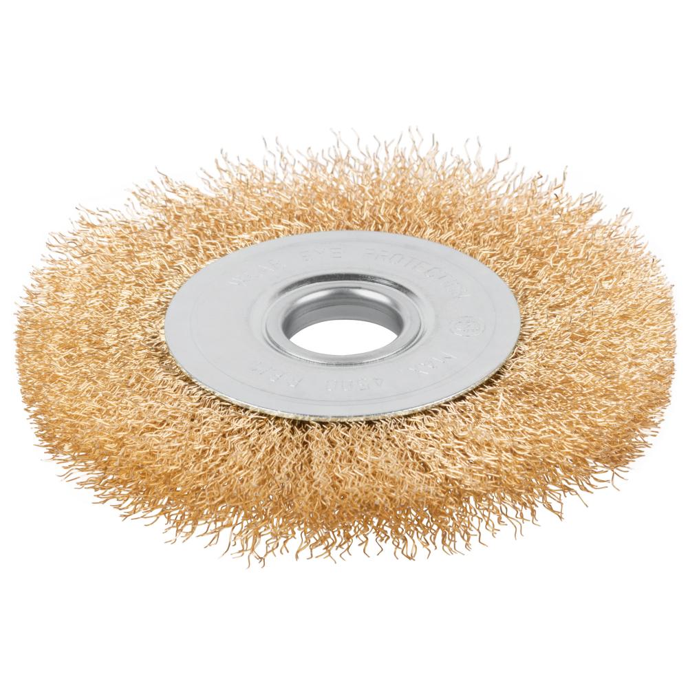 Щетка для УШМ, тип «Плоская». Предназначена для очистки различных металлических и деревянных поверхностей, снятия ржавчины, удаления лакокрасочных покрытий и других загрязнений. Тип «Плоская» оптимально подходит для обработки углов, пазов, изгибов и других труднодоступных участков. Щадящая зачистка, латунированная проволока 0,3 мм. Упаковка: блистер.