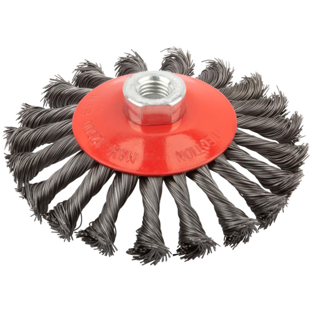 Корщетка-насадка для УШМ FIT IT тип «колесо» предназначена для грубой обработки дерева и металла, зачистки сварных швов, снятия краски и ржавчины. Стальная витая проволока обеспечивает высокую скорость и эффективность работы. Корщетка тип «колесо» наиболее эффективна при обработке стыков, углов, пазов и различных труднодоступных мест. Гайка с резьбой М14 обеспечивает прочную фиксацию на УШМ.