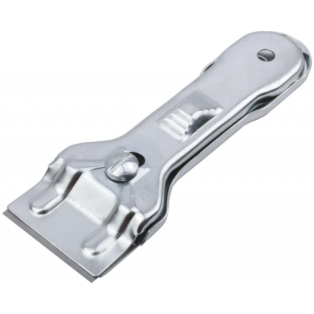 Для удаления краски и грязи со стекол и других гладких ровных поверхностей (в том числе стеклокерамики). Материал: инструментальная сталь с никелированным покрытием. Упаковка: блистер.