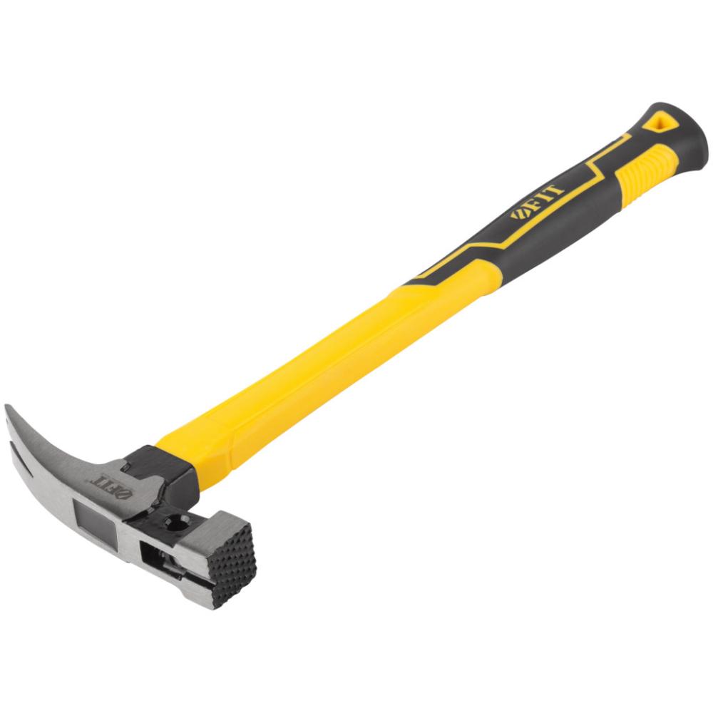 Удлиненная ручка. Выемка с магнитом для удержания гвоздей. Дополнительный гвоздодер для гвоздей небольшого размера. Материал: кованая инструментальная сталь, фибергласовая прорезиненная ручка, усиленная пластиком.