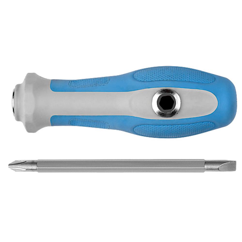 Отвертка с переставным жалом MOS предназначена для проведения работ с крепежными соединениями, имеющими шлицы PH2 и SL6. Двухсторонний стержень изготовлен из хром-ванадиевой стали, что делает инструмент прочным и увеличивает его стойкость к коррозии. Дополнительное установочное отверстие позволяет переставить шестигранное жало в Т-образное положение. Эргономичная пластиковая обрезиненная рукоятка обеспечивает удобство работы.