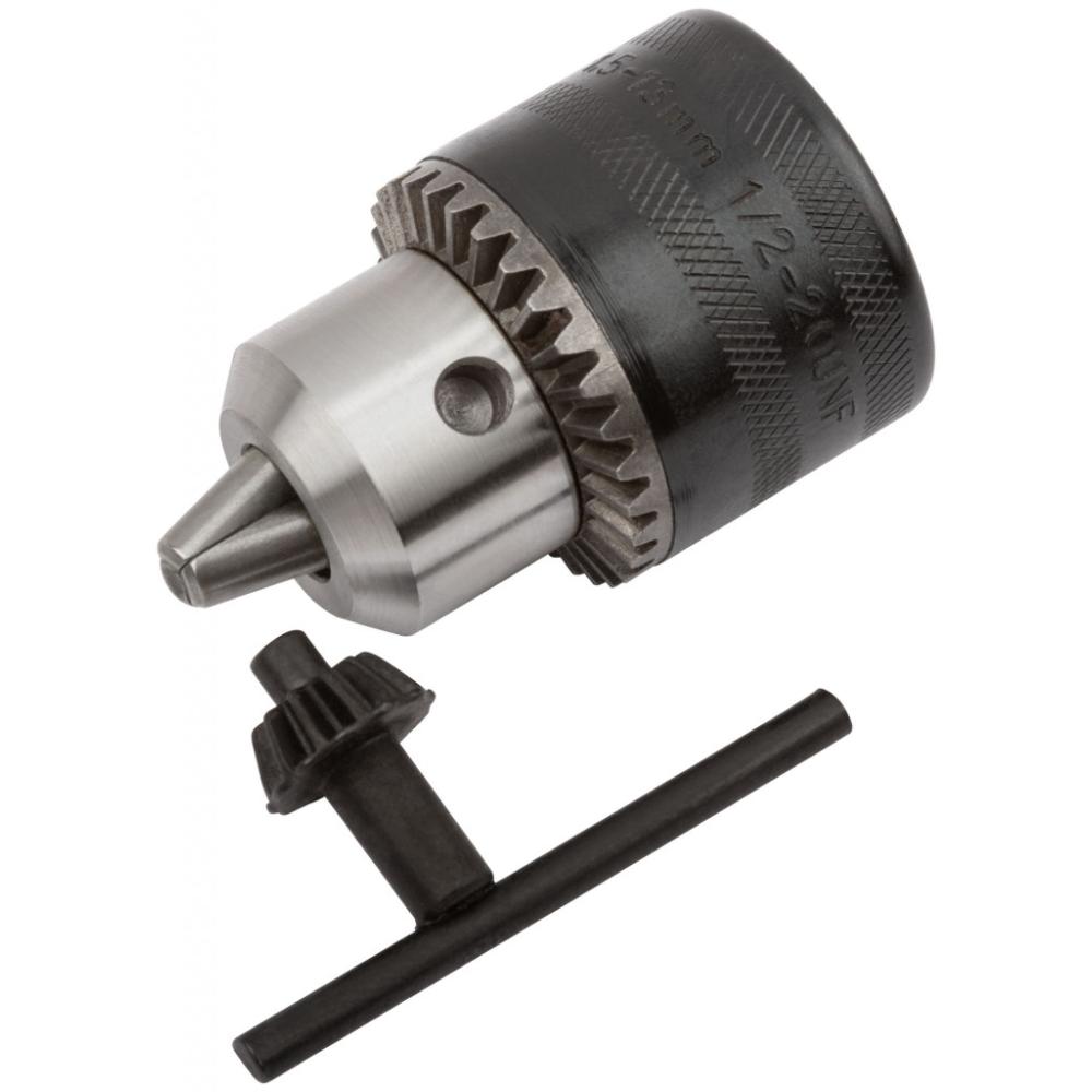 Трехкулачковый. для использования с ручными и эл. дрелями. Надежная фиксация сверла. Посадочный диаметр 1/2. Т-образный ключ в комплекте. Материал: инструментальная сталь. Упаковка: картонная коробка.