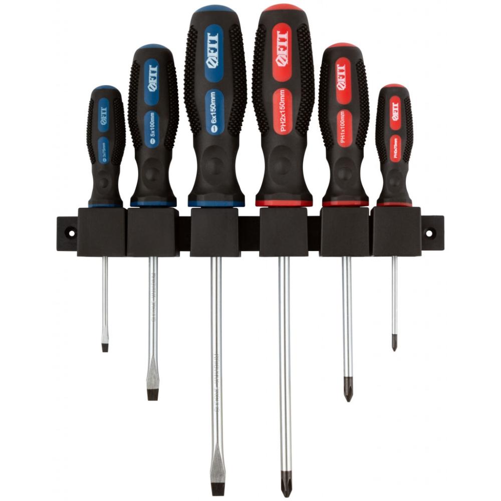 Отвертки "Универсал" Профи Фит, crv сталь, прорезиненные ручки, на держателе, набор 6 шт.