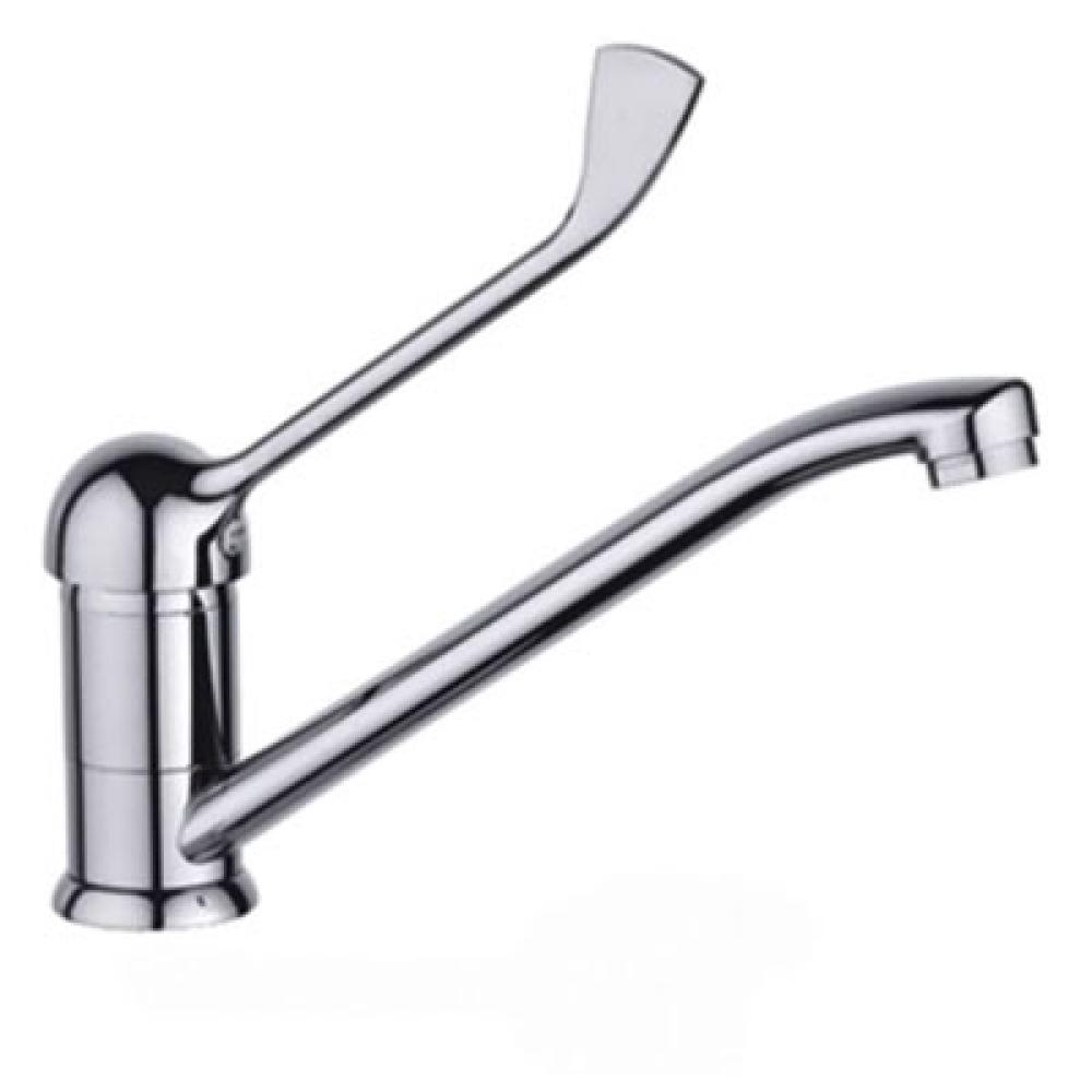 Смеситель для кухни с хирургической ручкой Gota Rocio изготовлен из качественных материалов, никель-хромовое покрытие соответствует стандартам качества, обеспечивает стойкость и зеркальный блеск в течении всего срока службы. Длинный поворотный излив на 360 градусов, длина излива 220 мм. Съемный пластиковый аэратор гарантирует ровный поток воды. Картридж d 35 мм обеспечивает плавный ход ручки смесителя. Цвет - хром