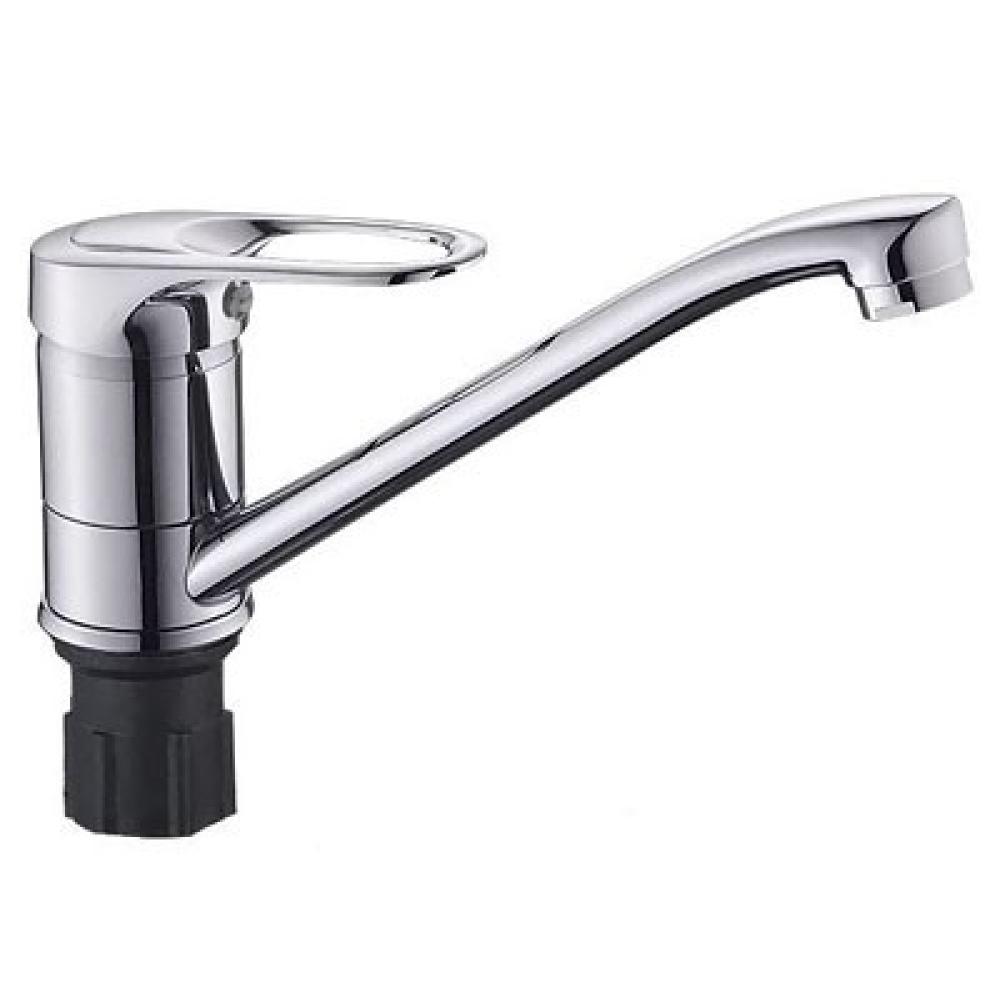 Смеситель для кухни с длинным изливом (крепление гайка) - Покрытие корпуса: хром - Картридж керамический 40 мм - Гибкая подводка 1/2" дюйма (400 мм) - С поворотным изливом 280 мм