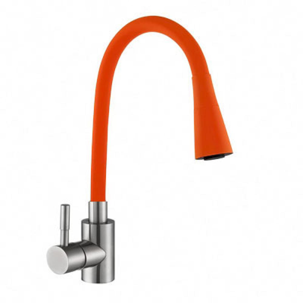 Смеситель для кухни шаровый, силиконовый излив,нерж.сталь, оранжевый, 572578 Мармелад Антей