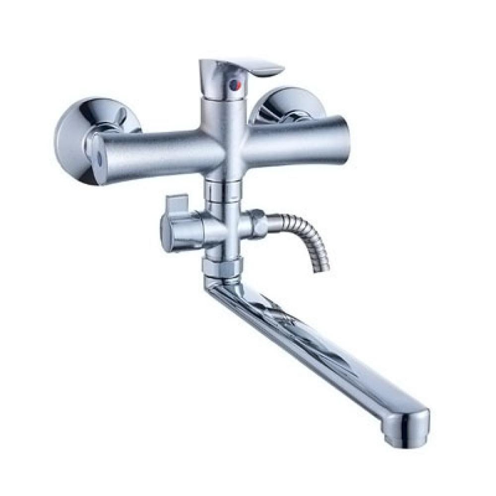 Смеситель универсальный с плоским прямым изливом и переключателем для душа