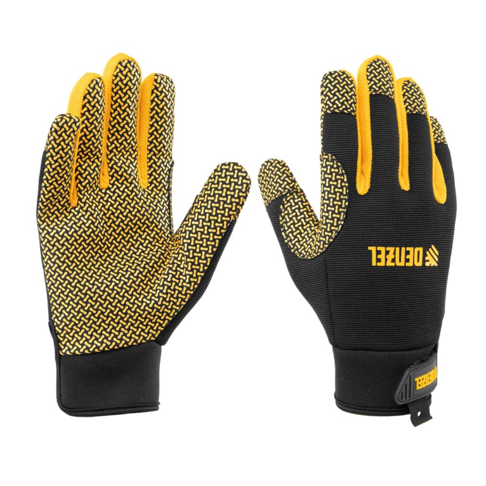 Универсальные перчатки Denzel 68000 размера 10, с силиконовым нанесением, предназначены для защиты кожи рук от механических повреждений. Используются во время слесарных и столярных работ.