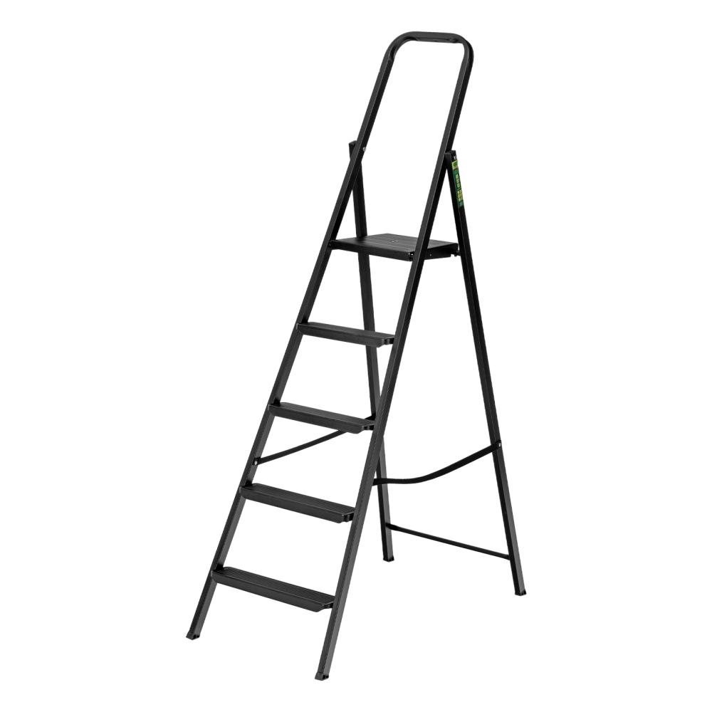 Стремянка компактная стальная Сибртех 97945 с 5 ступенями служит для проведения работ на высоте, превышающей человеческий рост. Стальные профилированные рама и ступени рассчитаны на нагрузку до 150 кг. Площадка находится на высоте 110 см от опорной поверхности, рабочая высота стремянки составляет 310 см (при среднем росте пользователя 170 см). Использовать стремянку можно дома, на даче или в гараже, а также во время строительства и ремонта.