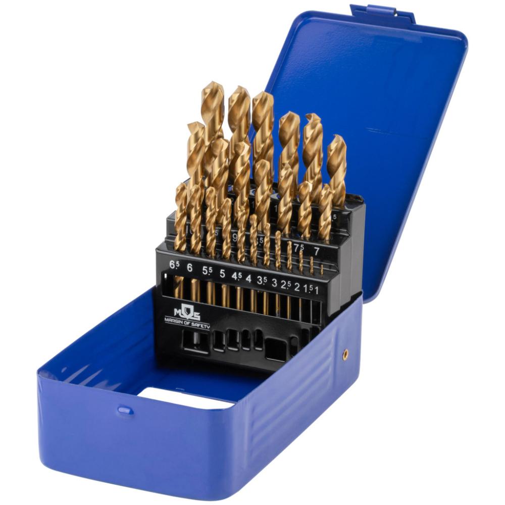 Набор сверл по металлу HSS шлифованные, титан, заточка 135°,  мет.бокс, 25 шт. (1-13мм), MOS