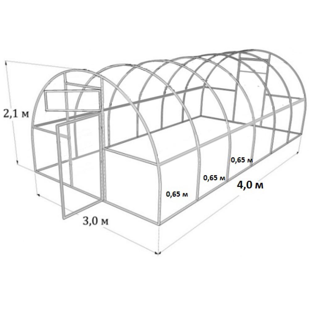 Каркас УСИЛЕННОЙ ТЕПЛИЦЫ изготовлен из профильной трубы 25*25*1,5мм, шаг дуг через 0,65м.