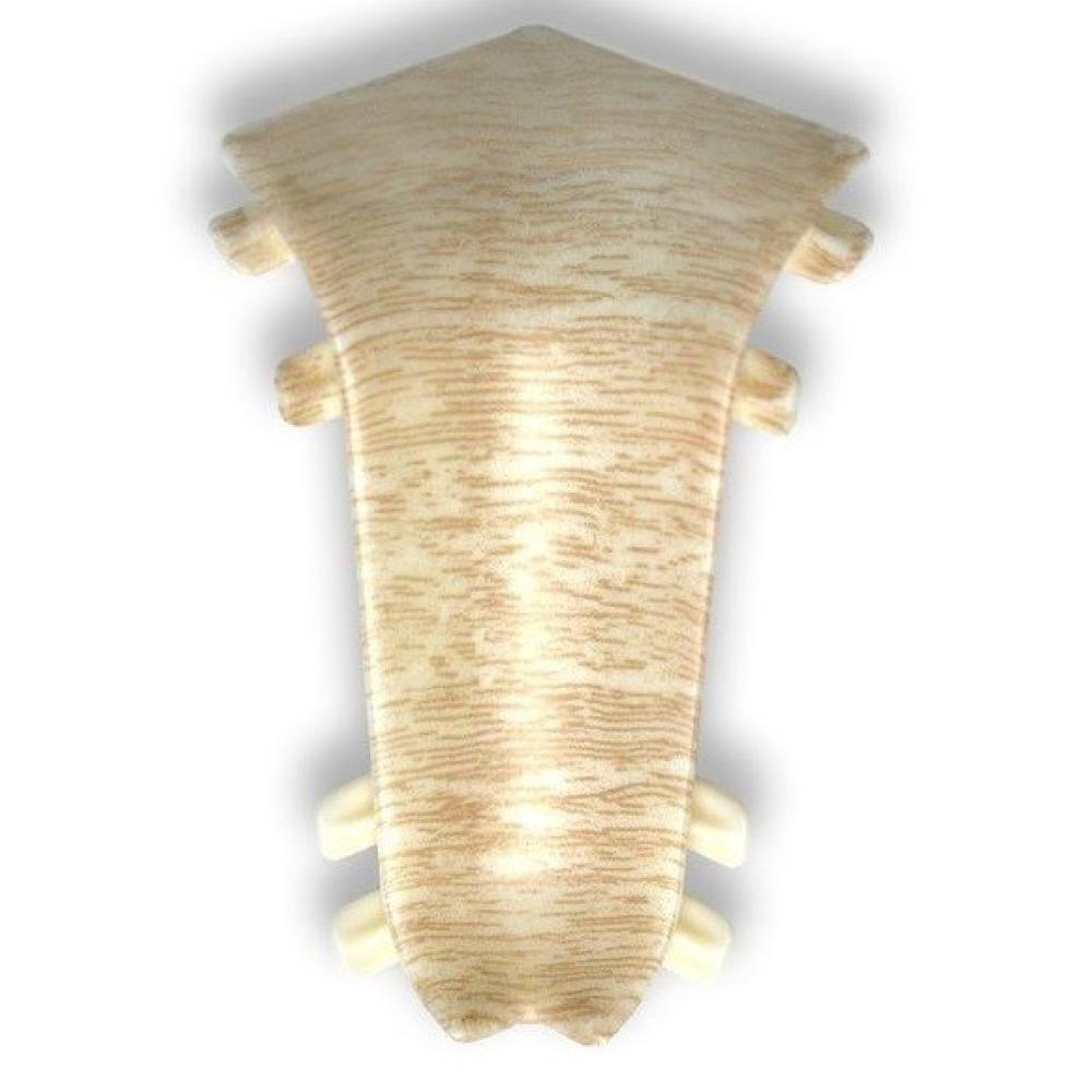Угол внутренний - декоративный доборный элемент из поливинилхлорида (ПВХ). Применяется при стыковке напольного плинтуса на выступах в помещении. Делает угловые соединения эстетичными и аккуратными, маскирует неровные срезы. Высота детали составляет 5,5 см см.