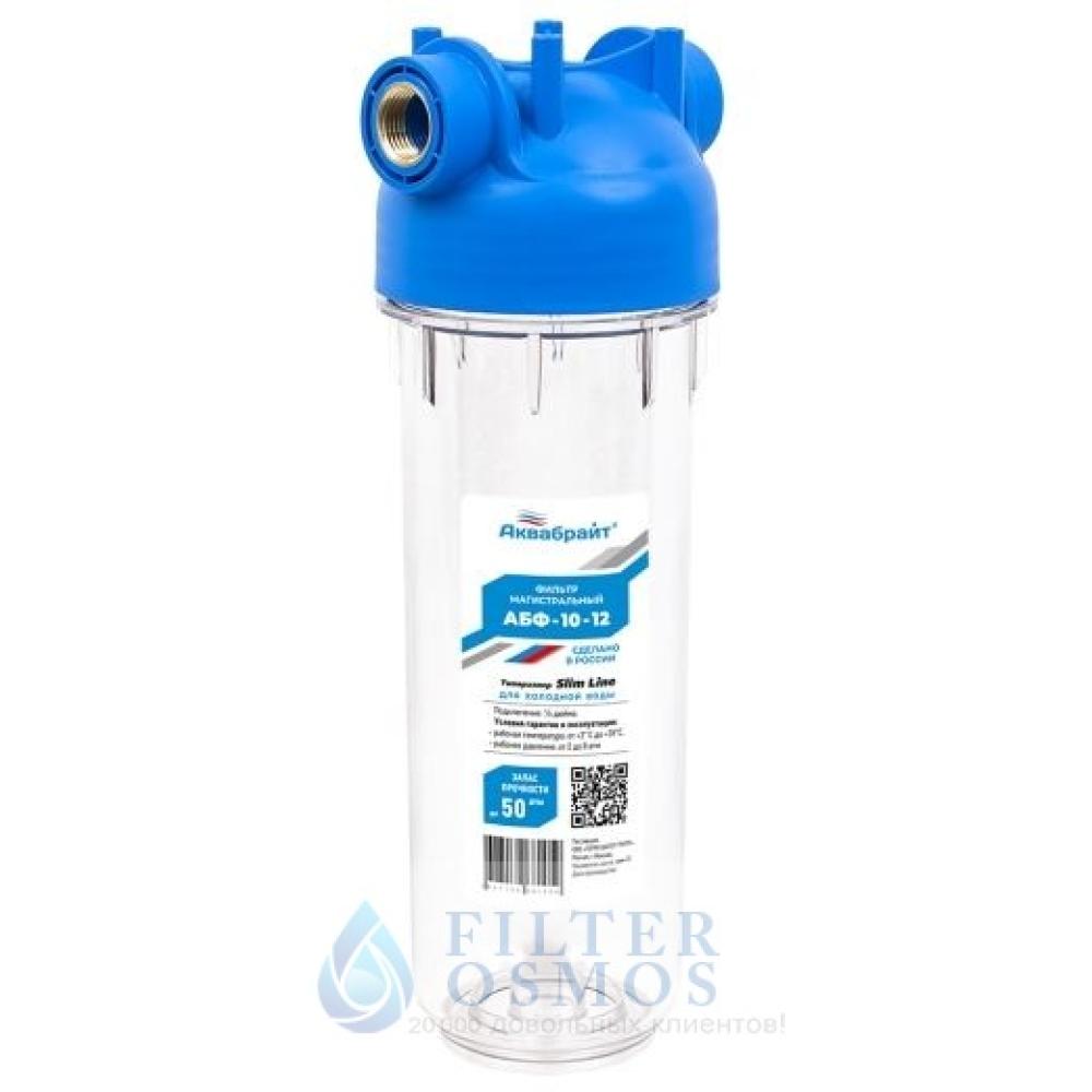 Магистральный фильтр АКВАБРАЙТ АБФ-10-1/2" предназначен для очистки холодной воды от механических частиц: песка, ржавчины, ила, окалины и т. п. Подключение к корпусу фильтра, соединение 1/2".
